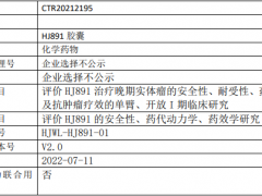 评价HJ891治疗晚期实体瘤的安全性、耐受性、药代动力学及抗肿瘤疗效的单臂、开放I期临床研究。