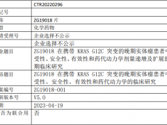 考察ZG19018治疗至少经一线标准治疗失败、不耐受或无标准治疗的携带KRAS G12C突变的晚期实体瘤患者的安全性和耐受性,并考察在设定剂量中可能出现的剂量限制性毒性和最大耐受剂量。