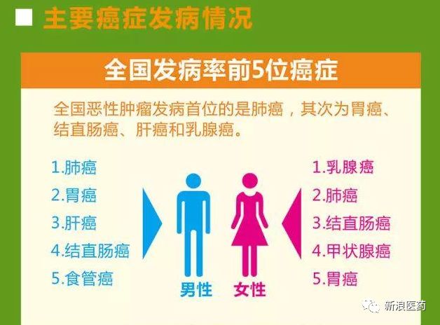 2018年2月,国家癌症中心发布了最新一期的全国癌症统计数据,此数据源于2017年全国肿瘤登记中心收集汇总的全国31省、市自治区肿瘤登记处2014年的恶性肿瘤登记资料。根据质量控制标准纳入339个登记处(东部地区140个,中部112个,西部87个),覆盖人口共288243347人(男性146203891人,女性142039456人),占全国2014年年末人口数的21.07%。2014年全国恶性肿瘤估计新发病例数380.4万例(男性211.4万例,女性169.0万例),平均每天超过1万人被确诊为癌症,每分钟有7个人被确诊为癌症。数据显示,我国各地区男性肺癌发病率、死亡率均排名第1,女性发病率排名第2,死亡率排名第1,故称之为“癌老大”,绝不为过。